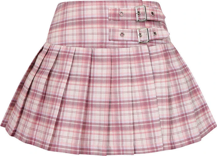 Ideal for anyone going for an alternative look. Buckle fastening at the waist and styled to look like a wrap over design, this mini has an iconic punk aesthetic and is comfortable and stylish to wear. The fabric is stretchy and will hold its shape. Make Avril proud with knee-high socks or fishnets under this beauty.