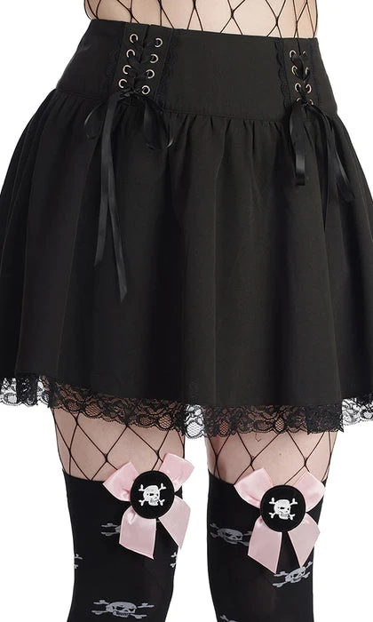 Calling all our goth cuties, this Sakura skirt is perfect for every occasion. Featuring a corset lace up belt detail, and lace trim, it look adorable paired with fishnets, a cute top and your go to boots.