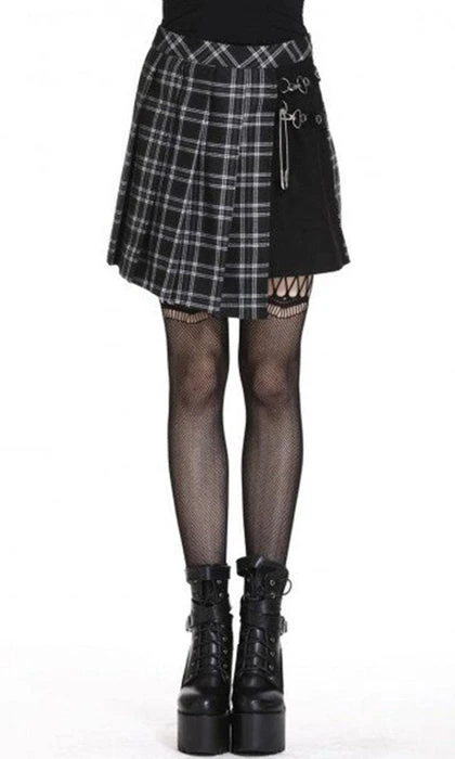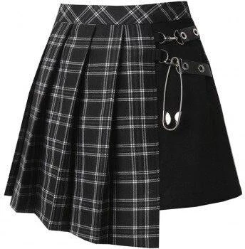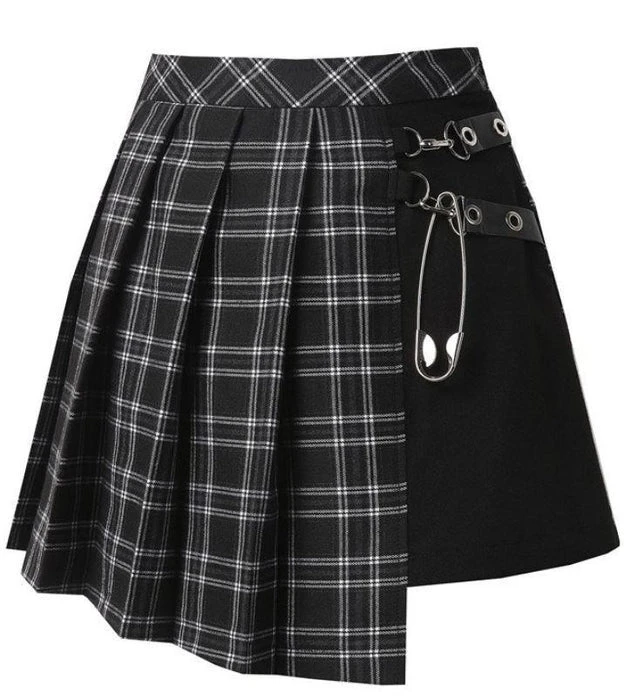 From the streets of Tokyo to your local gig, this grungy irregular hemmed skirt is the perfect staple. Featuring belt buckle and pin accents, the black tartan design is what every wardrobe craves!