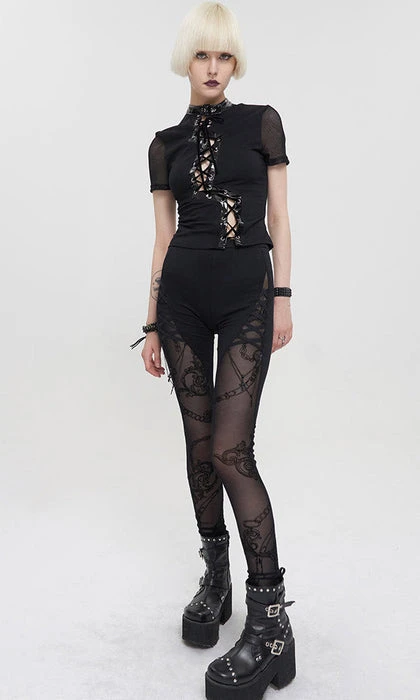– Criss cross pattern at top of leggings.