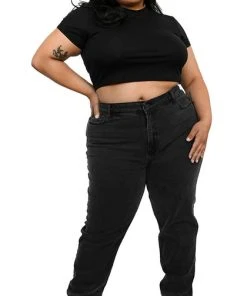 High waisted, black/grey wash jeans. Regular fit in the waist.