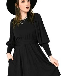 Long bishop sleeves and a flowy skirt.