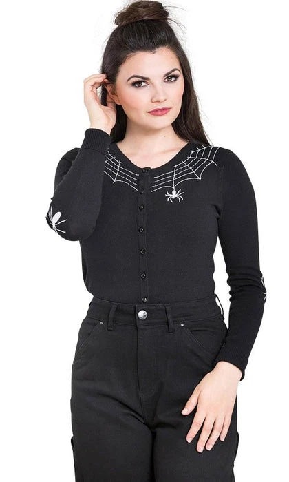 This creepy Spider Cardigan from Hell Bunny is perfect for keeping cozy in your haunted house! Featuring super soft fabric and spectacular spider embroidery- this piece is a Gothic wardrobe must-have.