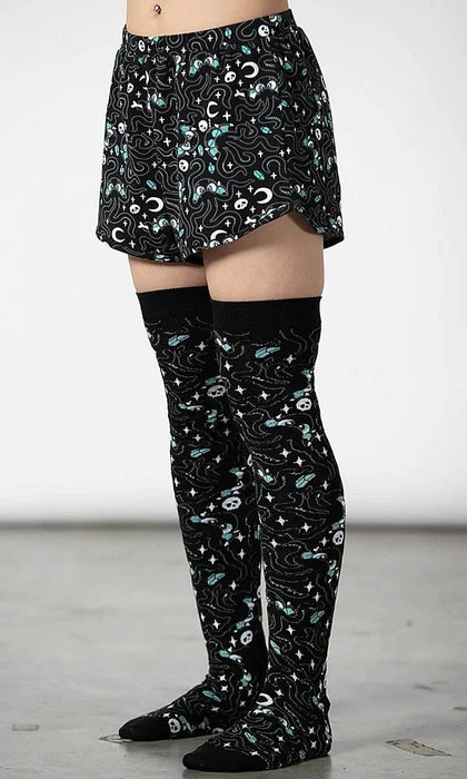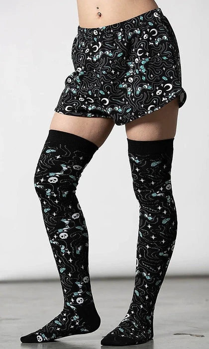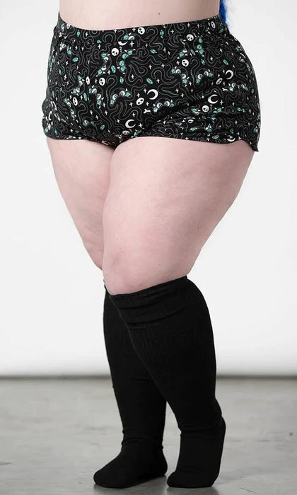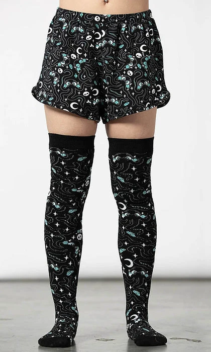 Open a portal to a new domain of comfort with the ‘Cthulhu’ shorts; Crafted in soft, stretch cotton with an elasticated waistband, finished with a statement all over print.