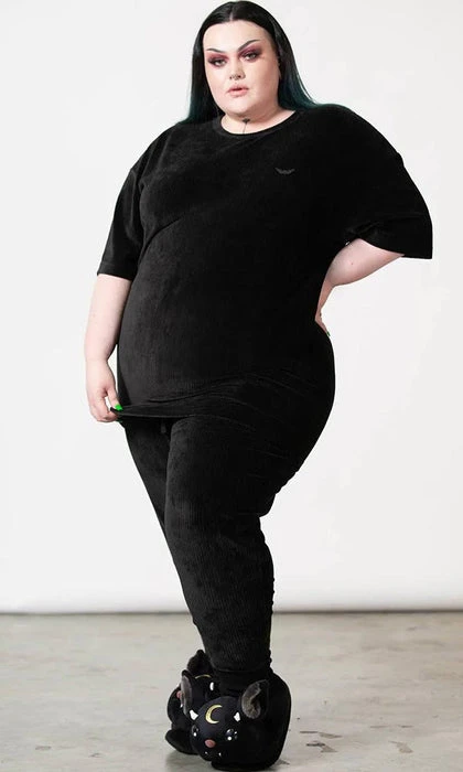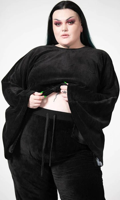 – Soft, ribbed velour, stretch fabric.