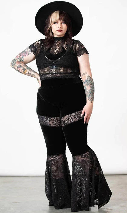 – Flared bell bottoms.