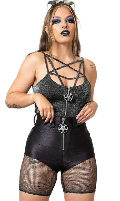 – Stretch, statement glitter fishnet.