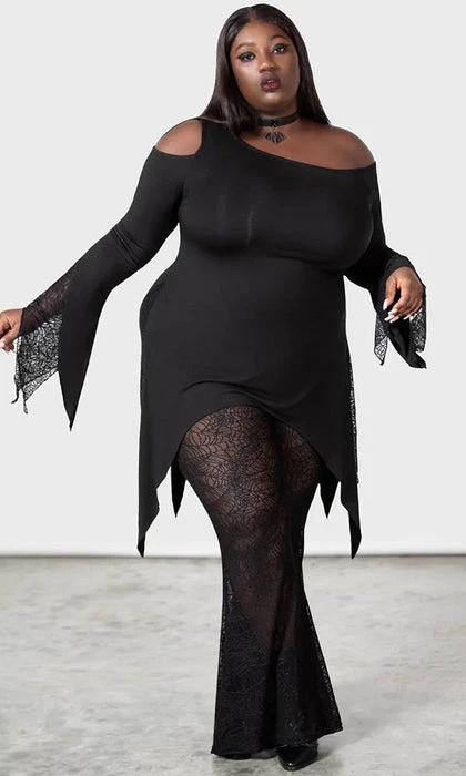 – Statement, custom spiderweb stretch lace.