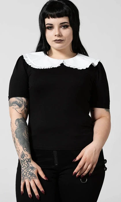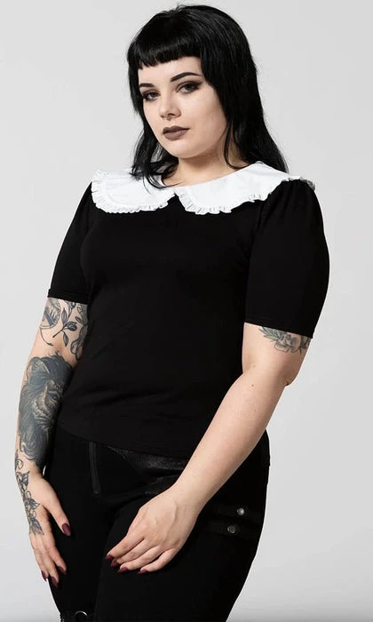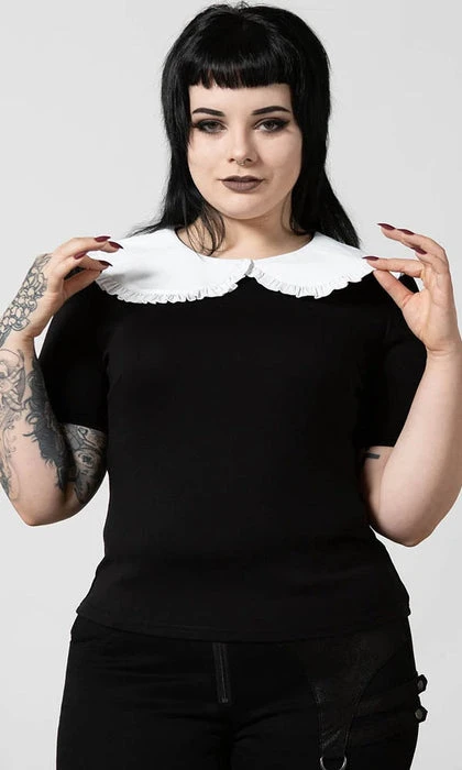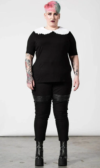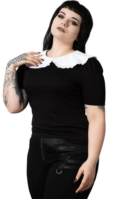 Be ready for any adventure in the ‘Ruby’ lace collar top; super-soft fabric that hugs to your body – with a round neckline and exaggerated lace collar and short puffy sleeves. An essential piece – easy to style depending on your mood/moon!