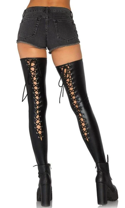 Sleek in the front and sexy in the back, unleash your edgy side in the Maisie Wet Look Thigh Highs. You’ll love the way you look and feel in these statement stockings – wear them with sexy lingerie or even a daring rave outfit for a look that’s sure to be a showstopper.