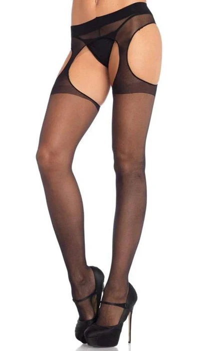 You’ve never seen a pair of pantyhose like the subtle, sheer Eden Sheer Suspender Pantyhose by Leg Avenue. This understated hosiery piece is anything but boring, featuring bold cutouts and a sheer silhouette that’s ultra-flattering. Wear it as the ultimate upgrade to a traditional pair of tights, and transition it seamlessly from the workplace to the bedroom.