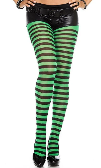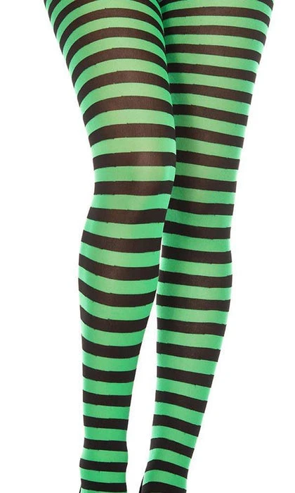These Black and Kelly Green Tights from Music Legs are the perfect addition to your next Costume, Cosplay, or Gothic Punk Outfit. Featuring small horizontal stripes and bright, bold colours, these opaque tights are not for faint-hearted!