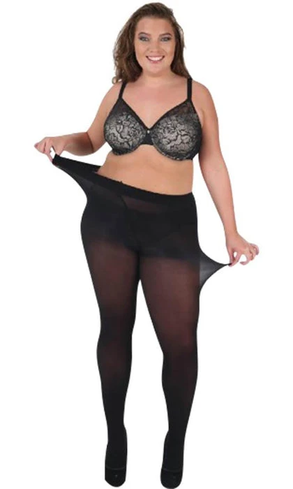 These specialist 50 Denier opaque tights are designed exclusively for plus size. They have a deeper body rise; wider thigh fit; re-designed waistband; flat seams; light leg support, to enhance overall comfort.