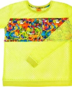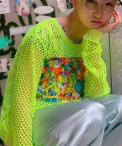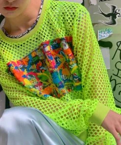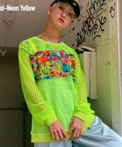 This Neon Yellow Mesh Top features an oversized fit, stretch fishnet, and ribbed cuffs and hem. Super comfy and stylish!