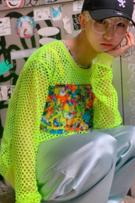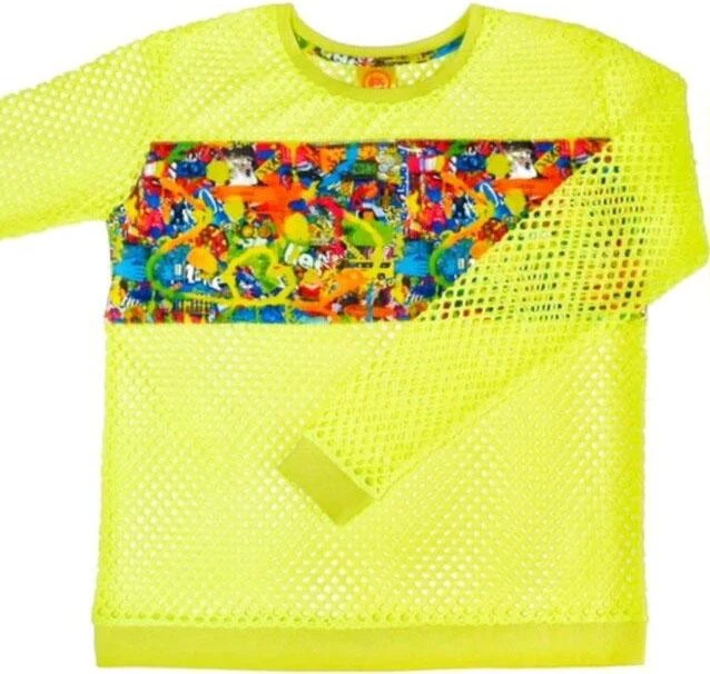 This Neon Yellow Mesh Top features an oversized fit, stretch fishnet, and ribbed cuffs and hem. Super comfy and stylish!