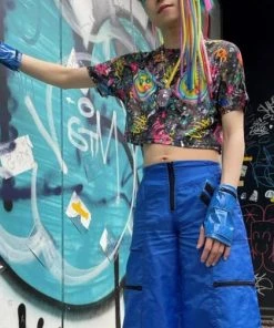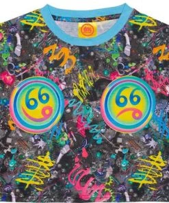 Wear this adorable Tee by itself or combined with a mesh top, tank top, or camisole underneath for an even cuter look. Pair with some bright stompy boots, leg warmers and some Kandi bracelets and get raving!