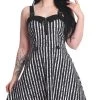Step over to the dark side with the Hollow Stripes playsuit. A grunge-style bold striped dungaree playsuit, complete with black straps and pentagram zips.