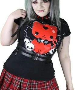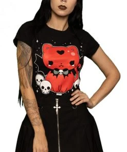 Spooky and Cute?! This top is made from super soft cotton, slim fitting and top quality! Features a bold graphic screen print that is part gothic, part kawaii, and all killer!