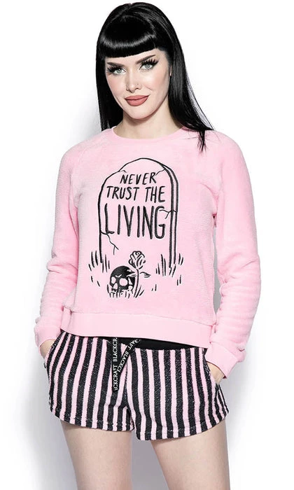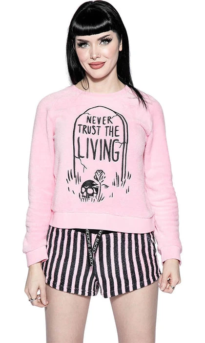 Slip into a peaceful slumber in the Never Trust The Living PJ Set! Perfect for those cooler months!
