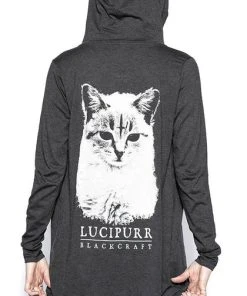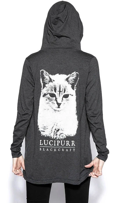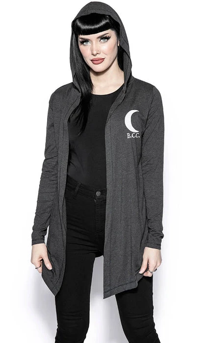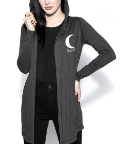 Women’s Lucipurr Cardigan from Blackcraft. This charcoal cardigan looks killer with skinny jeans and a printed tee.