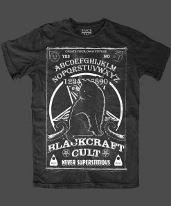 This comfortable shirt features a Black and Grey Ouija Cat design on the front, all on a black background.