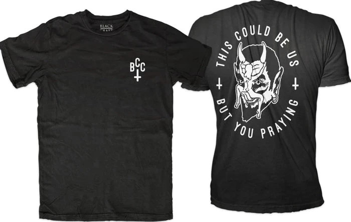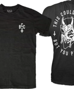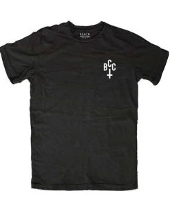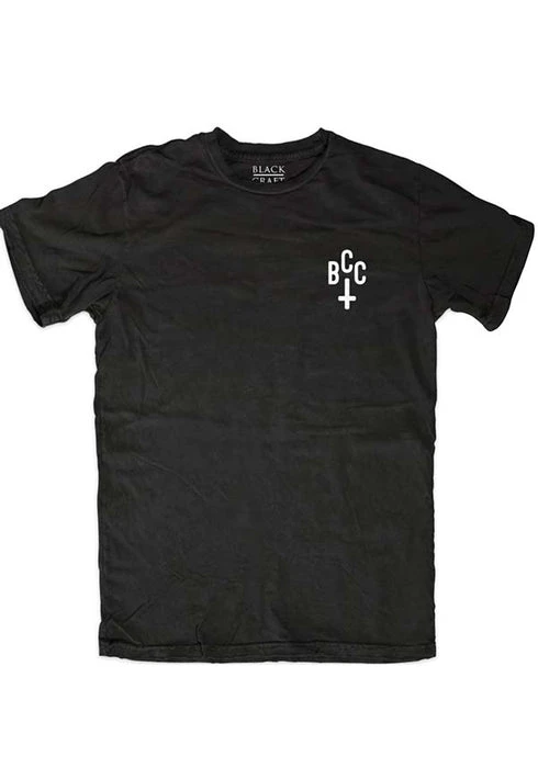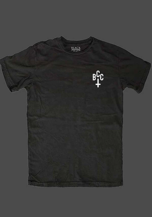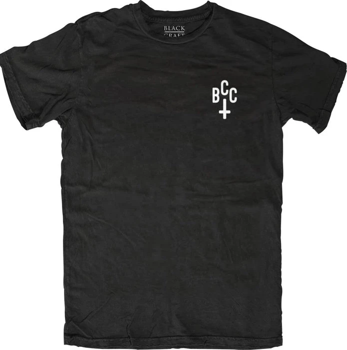 This comfortable shirt features a Black and Grey design on the back and a small pocket logo on the front, all on a black background.