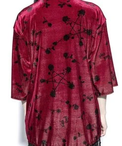 If you want to look like a Gothic Japanese Goddess then this Pentagram Rose patterned kimono is just the thing! Women’s Oversized kimono with crochet fringe detail at bottom!