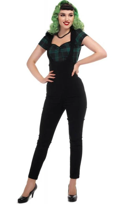 The Karen Suspender Pants are a super high waisted sleek pair of slim-fit, vintage inspired suspender trousers. They sit sky-high, just under the bust, with a wide waistband and comes with two built-in matching adjustable straps, stretching vertically across the shoulders for a comforting, chic finish. Karen is made from a super stretchy bengaline fabric to show off those beautiful curves and fastens with a discrete centre back invisible zip. The leg hem finishes just above the ankles, so why not pair her up with some wedges for a sleek vintage inspired outfit that offers a modern twist.