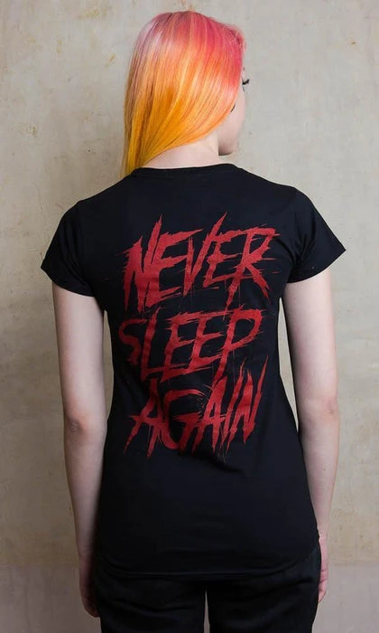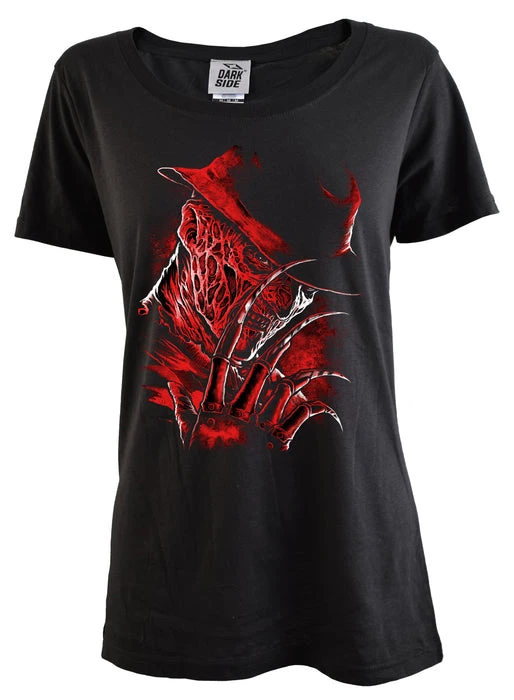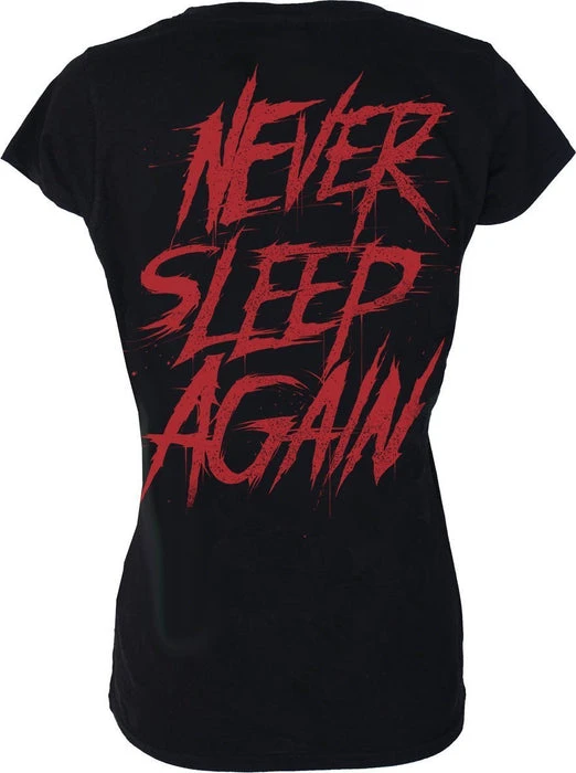 Never sleep again with this awesome tribute to A Nightmare on Elm Street. This fine knit cotton t-shirt features a large super soft feel front print of Freddy Krueger which is sure to keep you awake at night!