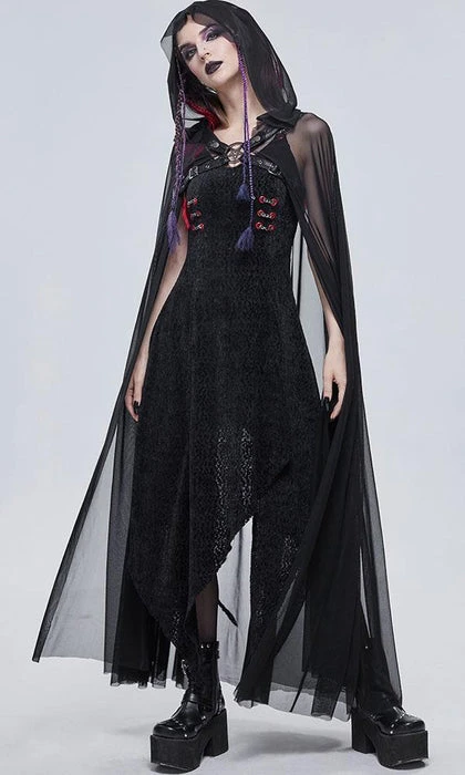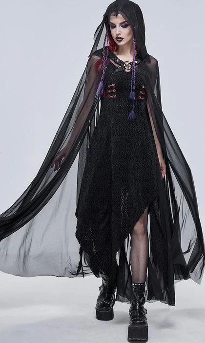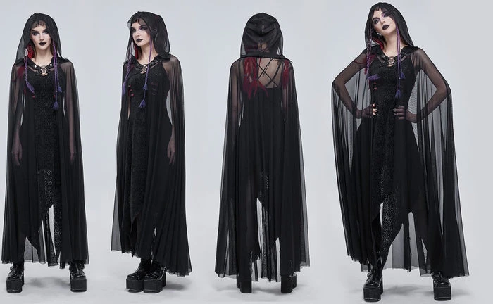 Weave through the night and blend into the darkness, shrouded in mystery and despair. Pair with a black fitted dress and boots for the ultimate goth look.