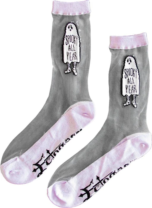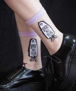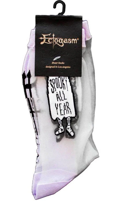 – Sheer socks with “Spooky All Year” ghost woven on sides.