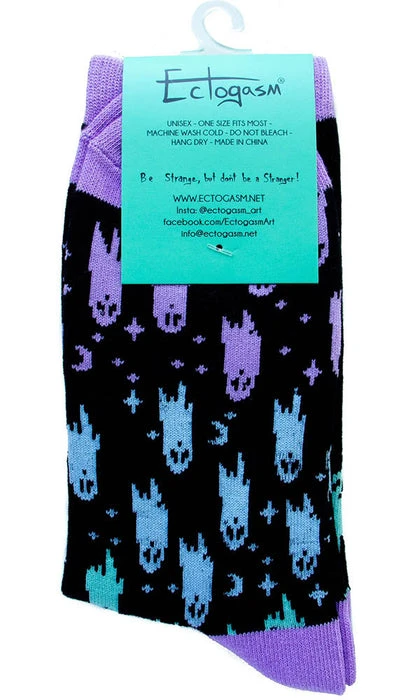 These spooky socks feature cute ghosts, stars, and moons in a rainbow of colours. They’re a colourful way to add a hint of witchery to any outfit.