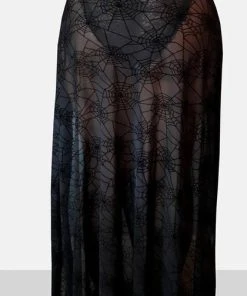 We are obsessed with this piece! Spider web mesh skirt has a classic M line cut. Pair it a pair of stomping boots or a leather jacket for a witchy look.
