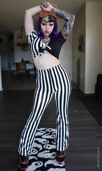 Who doesn’t want a staple pair of flared pants that have lots of stretch for the perfect fit? These classic pin stripe pants are perfect with any outfit!
