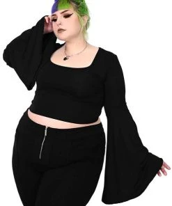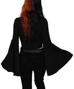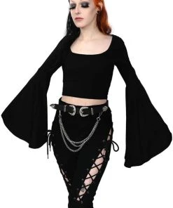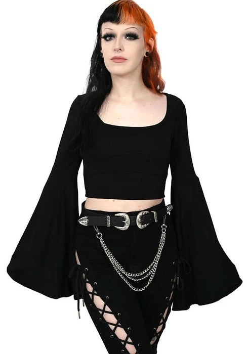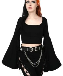 Signature crop tee fit, now with more drama. Pair with ripped jeans and a chunky belt for a casual goth look.