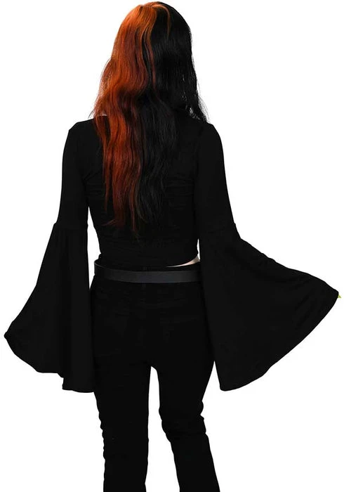 – Dramatic bell sleeves and ultra flattering square neckline.