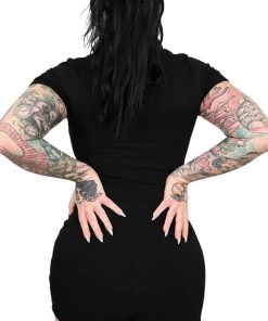 – Made out of a soft stretch black French Terry, with a black o-ring zipper front