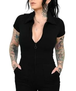 – Made out of a soft stretch black French Terry, with a black o-ring zipper front