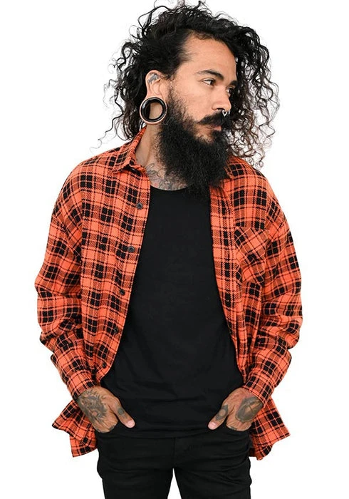 The perfect orange plaid button up! Great for spooky season but honestly all year round.