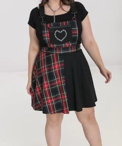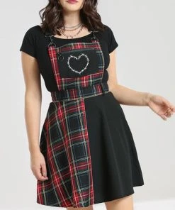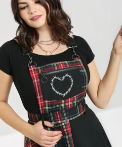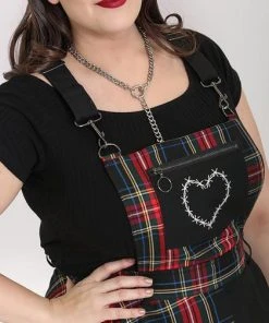 Time to add another tartan pinafore dress to your grunge wardrobe? Look no further than Hell Bunny’s Heather Pinafore Dress! This super grunge Black and red tartan mini pinafore dress sports crossover straps that are adjustable for your comfort and has a super cute contrasting black chest pocket with a white embroidered barbed wire heart and some exposed zip detailing for an extra added grunge effect!