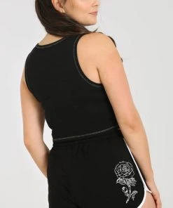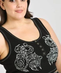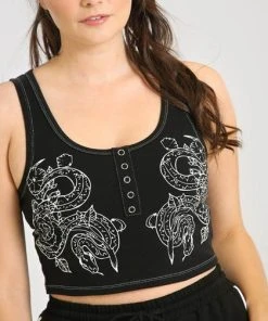 Look cute, feel comfy in the Medusa Crop Top with snakes and roses print.