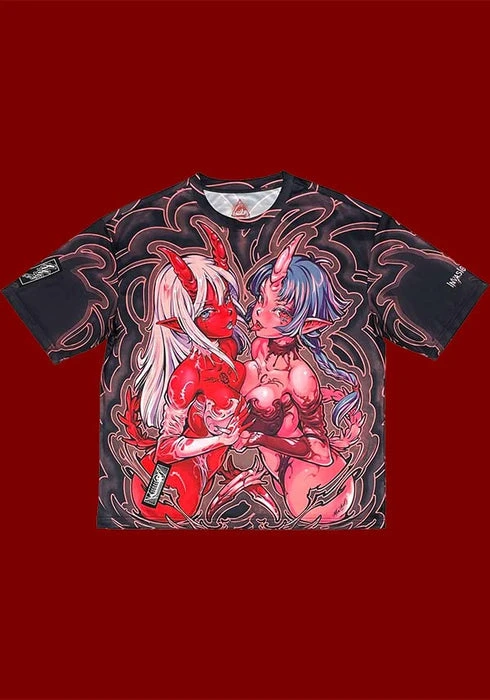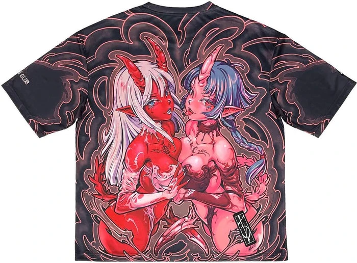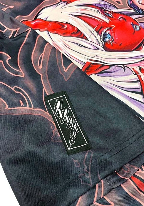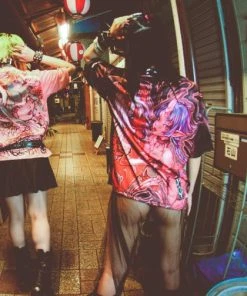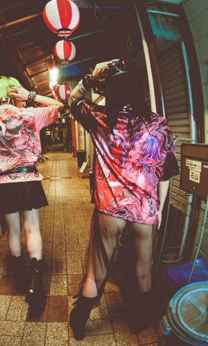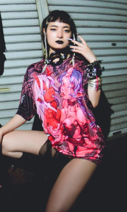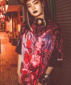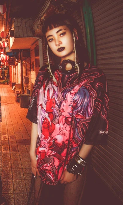 Fall in and get lost in this Acid Oni hallucination. Pair with skinny jeans and chunky boots for an edgy street vibe.