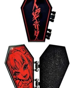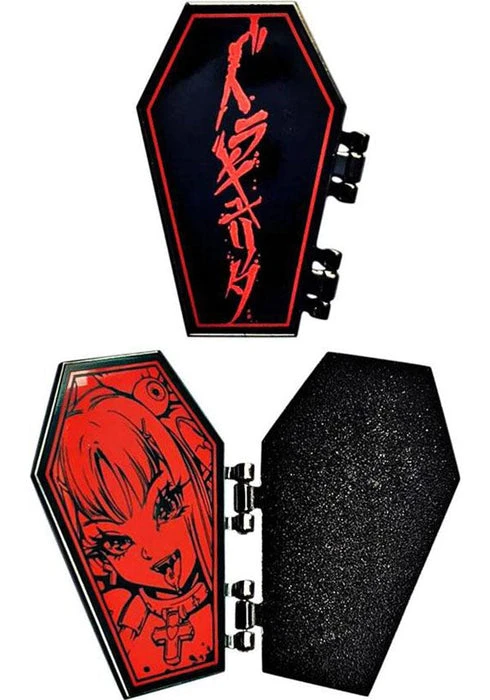 The Coffin Enamel Pin Flips open to reveal Draculita!