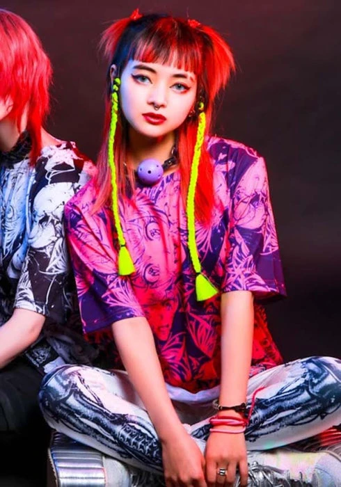 Stand out from the rest in the Rokuroku shirt. Pair with a mini skirt or skinny jeans and chunky boots for a head turning look.