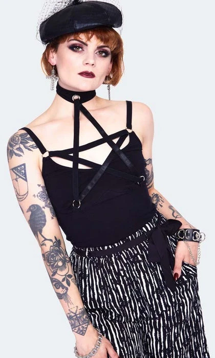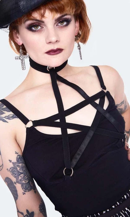Wear your pentagram on your chest in this stretch cami top. The choker neck and pentagram chest makes this top the only accessory you will need. Pair with a long flowy skirt for a gorgeous summer look.