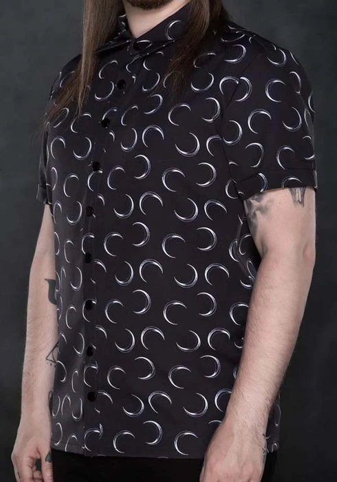 Button-downs don’t have to be boring—and the Just a Phaze Unisex Shirt is a testament to that. Elevating a casual short-sleeved silhouette with custom-printed crescent moons, this piece is an easy conversation starter. With a subtle stretch and convenient black snap buttons, this shirt delivers a masterful balance of form and function.