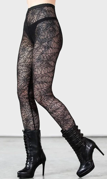 Be daring with these gorgeous sheer spiderweb leggings. Perfect to wear with an oversized shirt or your favorite black dress, this statement piece is sure to turn some heads.