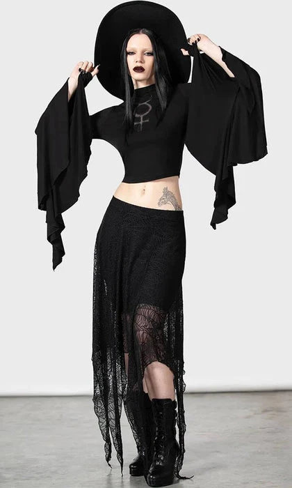 Bring the witchy vibes with you wherever you go with this gorgeous skirt. Pair it with a pair of witchy flats and a black top for a dressy look.