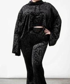 Namaste-slay in the ‘Chill Daze’ burn-out velvet leggings. Crafted in soft, super-stretchy velour fabric for the perfect figure hugging fit. Perfect for a cosy day in the crypt finding your inner demons or an effortlessly stylish grab-n-go look for your daily errands.