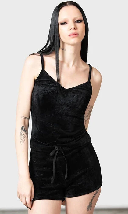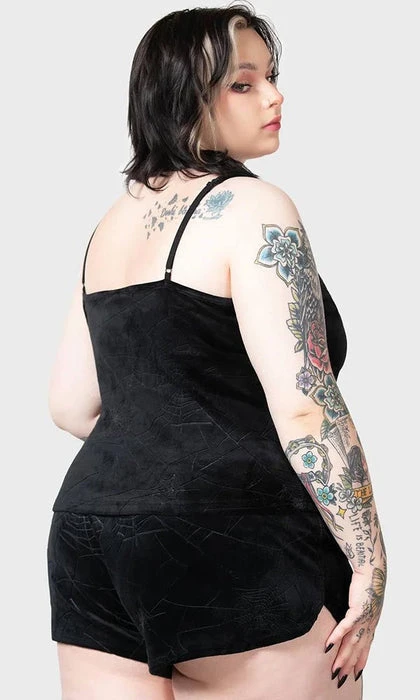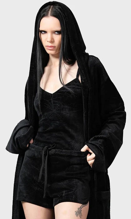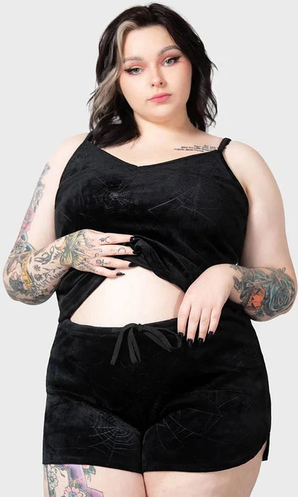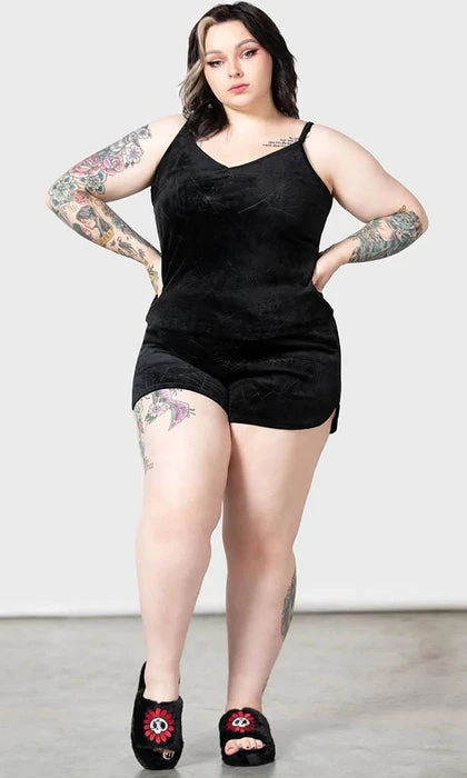 Feel like you can sleep for days when you wear the super soft ‘Eternal’ sleeper shorts. Complete with stretch velour, embossed spiderweb print and a drawstring waist. These shorts are perfect for slumber parties, movie marathons or a quick nap that’ll leave you wondering what year it is.